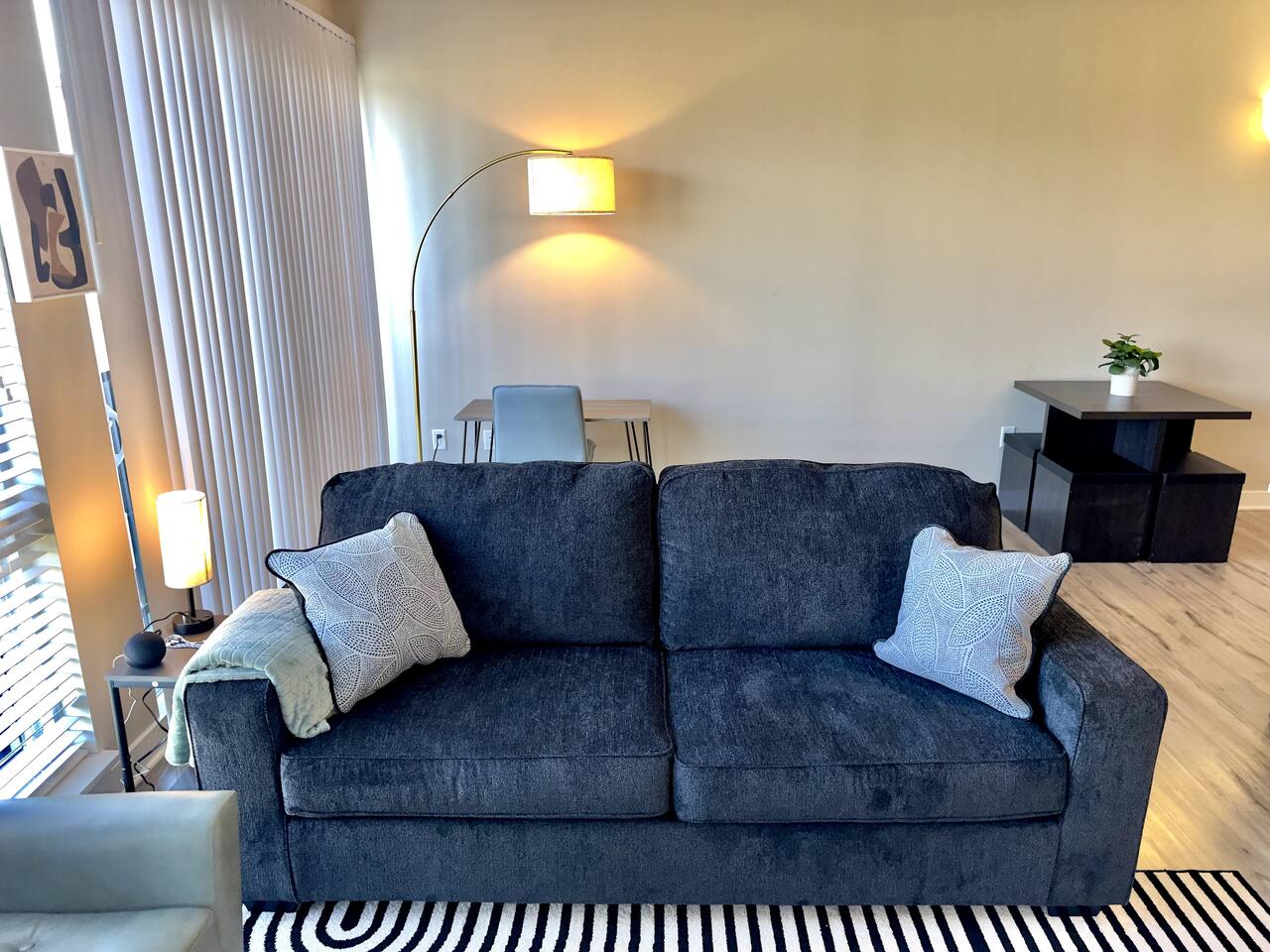 Welcome to our stunning one-bedroom property, featuring a spacious living room and a peaceful balcony view. You'll fall in love with the modern and comfortable design, making you feel right at home. The bedroom is cozy and inviting, perfect for a good night's rest after a busy day exploring the city. The living room is a great place to unwind and relax, with plenty of seating and natural light. The balcony offers a peaceful view, the perfect place to enjoy a cup of coffee. We have carefully designed every aspect of this property to provide you with the ultimate comfort and convenience during your stay.